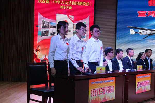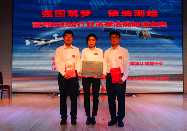 4月26日,第三地质队地理信息测绘院3名员工代表队上参加了宝鸡市测绘行业法律法规知识竞赛,并最终以总分300分的出色表现获得竞赛第一名。通过此次竞赛进一步增强了第三地质队地理信息测绘院全体员工的责任感和荣誉感,进一步提升了第三地质队在宝鸡市测绘地理信息行业的知名度和影响力。