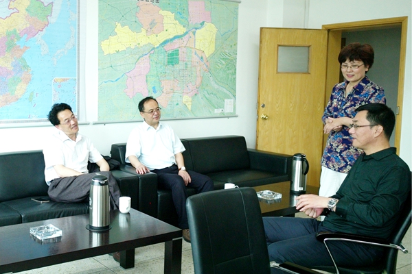5月20日,青海省有色地勘局局长杨站君、副局长、总工程师沈小荣一行,来总公司调研“走出去”战略实施情况。总经理刘建勤会见了杨站君一行。总工程师齐文与杨站君一行进行了亲切座谈。
