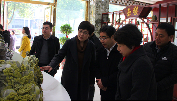 钟顺虎先后参观了公司玉雕厂和玉石展厅,在参观过程中听取了何淑萍关于公司发展规划、企业建设等方面的工作汇报。钟顺虎强调,企业要以文化为引领,通过持续技术创新、经营创新、文化创新等方式,探索并延伸企业文化内涵,抓质量文化和品牌文化等一系列正向企业文化,为企业快速发展提供强大的凝聚力和向心力。同时要求汉中市委宣传部和南郑县委宣传部将“汉中玉”宣传工作纳入下年度工作重点,力争将“汉中玉”打造成为有地域特色的文化产业。