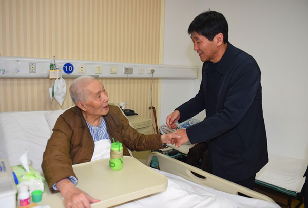1月16日上午,集团公司党委书记、董事长赵廷周前往陕西省人民医院,看望慰问离休干部石磊老人。副总经理艾亚雄一同看望慰问,有关部门同志陪同。