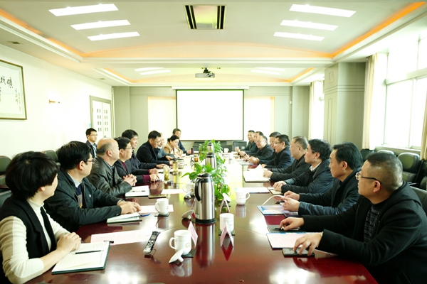 2月15日下午,湖南省地勘局党组书记、局长叶爱斌,党组成员、副局长夏卫平一行来地矿集团公司调研地勘单位改革发展情况。地矿集团公司党委书记、董事长赵廷周,党委副书记、总经理刘建勤,党委委员、副总经理、工会主席白林科与叶爱斌一行进行了座谈交流。