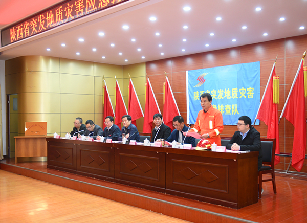 10月17日上午,陕西省应急办在陕西地矿集团举行陕西省突发地质灾害应急排查队授牌仪式,陕西省应急办主任白凡为陕西省突发地质灾害应急排查队授牌并作重要讲话;陕西省国土资源厅总规划师汤鹏超出席并讲话;陕西地矿集团党委书记、董事长赵廷周出席并讲话;省应急办应急处处长曹国瑞主持仪式并宣读陕西省应急委员会文件;地矿集团党委副书记、总经理刘建勤出席,副总经理、陕西省突发地质灾害应急排查队队长马贵锁作表态发言。