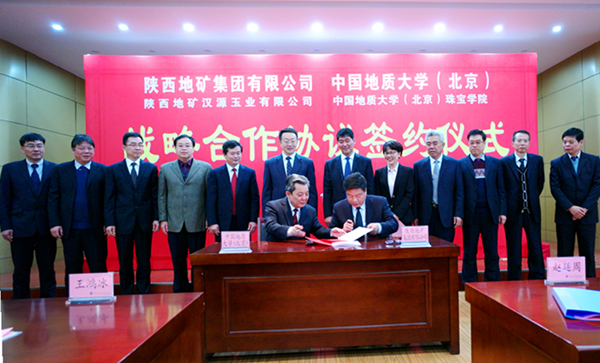 签约当天,陕西地矿汉源玉业有限公司与中国地质大学(北京)珠宝学院同时签订了合作协议。
