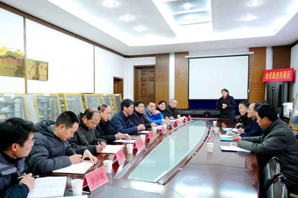 赵廷周对席金峰一行深入地矿集团公司系统调研慰问表示热烈欢迎,同时介绍了集团公司的基本情况,重点介绍了集团公司的历史业绩、主营业务范围和转型升级“三大发展战略”。综合地质大队负责人介绍了单位目前的改革发展情况,重点介绍了发展思路和员工队伍稳定情况。