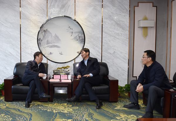 11月23日下午,地矿集团公司党委书记、董事长赵廷周,党委副书记、总经理刘建勤,在集团公司总部会见了西咸新区党工委委员、管委会副主任、秦汉新城党委书记、管委会主任杨占文。双方就继续合作事宜进行了友好商谈。