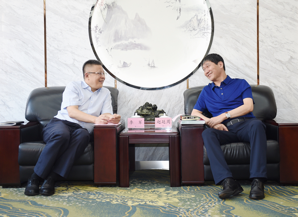 赵廷周向对方介绍了地矿集团历史沿革、队伍状况、经营规模和员工收入等基本情况。重点介绍了地矿集团近70年来一直担负着国家和陕西基础性、战略性、公益性地质工作,所找到的矿产资源和能源,支撑了陕西几十年的发展,为国家和陕西经济社会发展作出了重大贡献。同时强调,进入新时代,地矿集团广大干部员工不断树立忧患意识、市场意识和担当意识,大力弘扬长征精神、延安精神和地矿精神,积极实施“三大战略”,努力建设“三个地矿”,地矿经济增速在全国地勘行业内领先,得到了省委省政府肯定和社会各界认可。