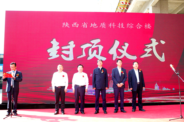 赵廷周宣布“陕西省地质科技综合楼项目喜封金顶。”