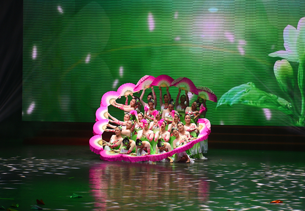 情景表演《岁月如歌》,歌舞《我们的幸福生活》《我爱你中国》《美好新时代》,舞蹈《追梦》《出水莲》《茉莉花》《丝路霓裳》《燃青春》,热情讴歌党,讴歌祖国,讴歌人民。现场观众舞动手中的国旗,人民剧院成了一片红色的海洋。