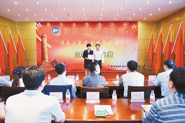 经过选拔的32位青年选手,依次上台,展示自我,展现激情。“以献身地质事业为荣,以艰苦奋斗为荣,以找矿立功为荣”的“三光荣”精神,激励一代又一代地质工作者拼搏进取,无私奉献,在地质找矿中发挥了积极作用。各位选手紧紧围绕“三光荣”这一主题,或是讲自己的工作经历,或是讲身边人的故事,以生动的语言、真挚的情感和饱满的激情,再现了老一代地质工作者献身地质事业的光荣感、责任感和使命感;展示了新一代地质人传承“三光荣”精神,为实现找矿突破战略行动宏伟目标作出新的更大贡献的精神风貌和奋斗的青春历程。
