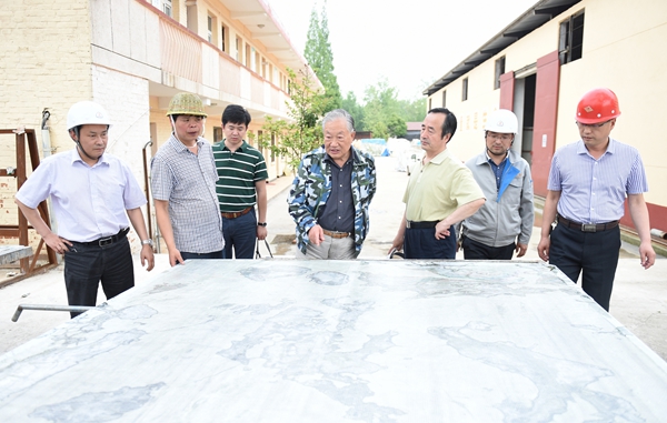 14日下午,老部长一行返回汉中,顾不上休息片刻,径直来到汉元公司桃花店玉石加工厂,走进生产车间检查石材加工流程,进入加工车间观看玉石加工工艺,并向随行的汉中队负责同志仔细询问玉石、板材的生产和销售情况。看到件件温润光滑、晶莹剔透的玉雕,老部长欣然为公司挥毫题词:“米仓深处藏香玉”。
