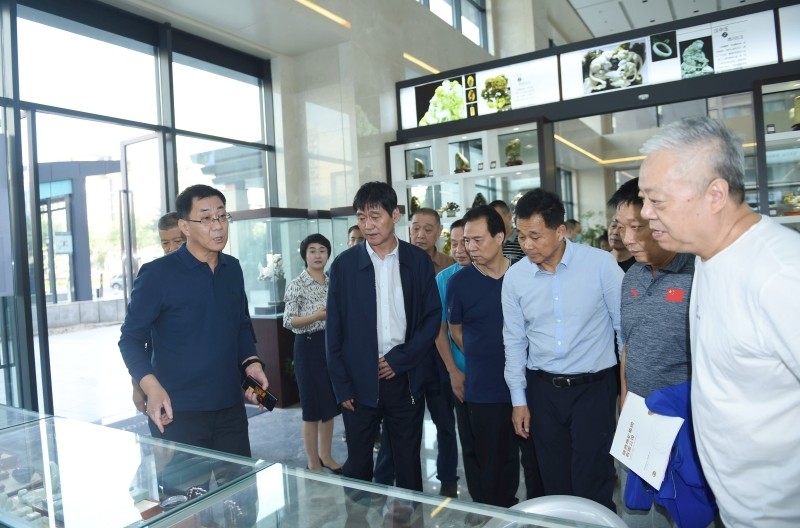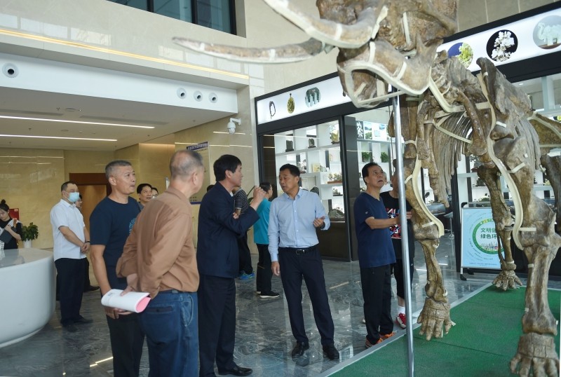 期间,赵廷周一行观看了地矿集团在一楼大厅展出的汉江中国乳齿象化石和汉中玉文化产品。