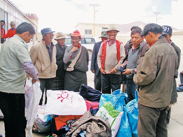 4月份尼泊尔8.1级大地震波及了西藏日喀则、阿里等地区,许多牧民的房屋和牛羊圈舍都倒塌,牧民生活雪上加霜,这一灾难牵动了区研院杰萨错项目人员的心,更牵动了区研院人的心。4月底,杰萨错项目将在阿里地区续作第二年的野外地质调查工作,出队前,在该项目的积极倡议下,区研院举行了“情系灾区,送温暖到高原”为主题的衣物募捐活动,职工同志们都表现出极高的热情,纷纷伸出援助之手,仅两日就募捐到衣物、鞋子200余件。因项目车辆装载有限,出队时间紧,有些职工因未能提前整理出棉衣而深表遗憾,有些单衣也未能装载上车。就这样,项目组满载区研院人的爱心如期出发了。