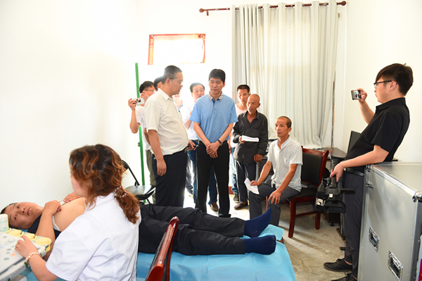 在天度村委会大院,赵廷周亲切地与村民打招呼,拉家常,与医务人员现场为村民宣传讲解健康防病知识,耐心回答大家提出的问题。“我们老百姓能够得到免费体检,是习总书记领导的好呀,感谢共产党!”这是赵廷周在大院与村民谈心中听到最多的一句话。
