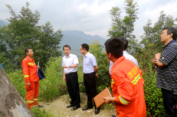 7月20日,董普选在马贵锁陪同下,深入汉中地质大队(汉中支队)调研慰问,对汉中支队在地质灾害防治尤其是略阳县“7•11”“7•14”洪灾核查工作中表现出来的担当精神给予高度肯定。随后,受赵廷周董事长、董普选副厅长委托,马贵锁副总经理前往略阳实地检查指导支队工作,看望慰问应急队员。马贵锁讲到:“汉中支队此次开展地灾应急核查工作,集结迅速、高度负责、担当作为,充分体现了为政府分忧、为社会服务的职责和使命”。在汉中、略阳期间,马贵锁与汉中市委常委、常务副市长陈晓勇进行了探讨交流;与汉中市国土资源局、略阳县国土资源局有关人员进行了座谈,就共同应对略阳县“7•11”“7•14”洪灾充分交换了意见。汉中支队“特别能吃苦、特别能忍耐、特别能战斗、特别能奉献”的精神,赢得了市县两级政府部门的高度肯定和赞扬。