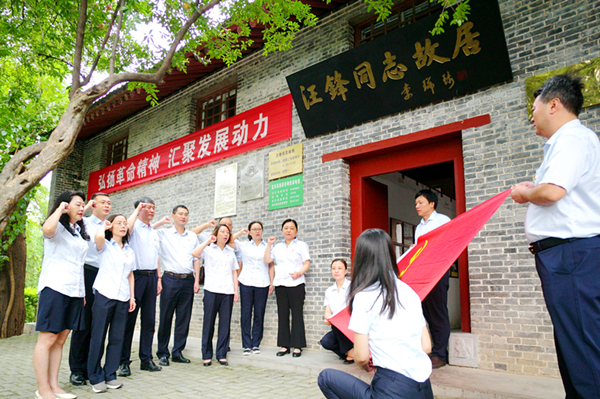 一支部全体党员首先来到蓝田县九间房镇汪锋故居纪念馆。汪锋同志是西北革命的先驱之一,建国后,历任宁夏、甘肃、新疆3省区主要领导,是第六届全国政协副主席。在纪念馆门前,一支部全体党员重温了入党誓词,并在讲解员的带领下,参观了纪念馆,了解了汪锋同志为了党的革命和建设事业情怀深厚、不懈奋斗的一生。