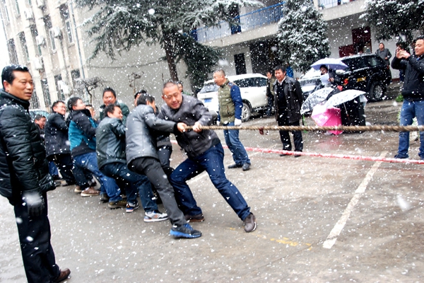 汉中地质大队一年一度的冬季职工运动会于1月19日拉开帷幕,在汉中队队部和颐康源运动休闲中心分别举行了拔河比赛和篮球比赛。场上,运动员团结协作、顽强拼搏、勇争第一的运动精神和强烈的集体荣誉感感染了在场的每一个人;场下,观众们冒着大雪,不畏严寒呐喊助威,掌声、欢呼声此起彼伏,一浪高过一浪。赛场内外始终洋溢着团结、拼搏、竞争的良好氛围。比赛赛出了友谊、赛出了风格、赛出了水平,圆满实现了运动成绩与精神文明双丰收,生动践行了“凝心聚力、攻坚克难”的凝聚力、向心力、战斗力,充分展示了汉中地质大队全体职工良好的精神风貌。