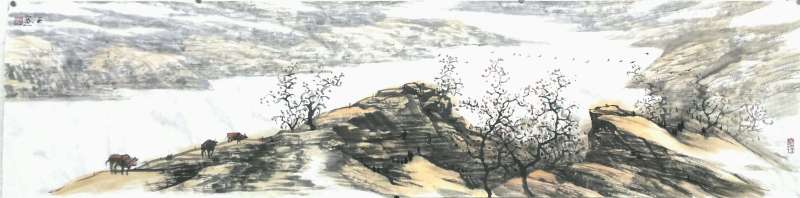 从王宽的山水画里传递出一股难以抗拒的洪流,如同惊涛骇浪、洪水猛兽。这些令人激昂的符号不仅仅是视觉的,它还激活了欣赏者所具有的全部感官,从妙悟的画面里爆发出冲击的力量,它上升、下降、增大、缩小,并向人们传送出山水的震颤。雪景足可以洗涤浸透在山水、树木、乱草丛中的污泥浊水,同时净化了灵魂,提升了艺术的品位。 ——邵养德