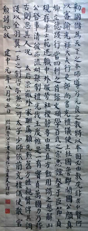 3、尽可能接近他的气韵。《自书告身帖》纸本墨迹,可以临的比较像,但是,要临出他的气韵比较难。因为他要给太子当老师,神情愉悦,玩书法于股掌,率性而为,也成就了他晚年的经典之作。我们难于体会他当时的心境,但“神”藏于“形”中,尽力做到“形神兼备”,才有可能一定程度地写出他的气韵。