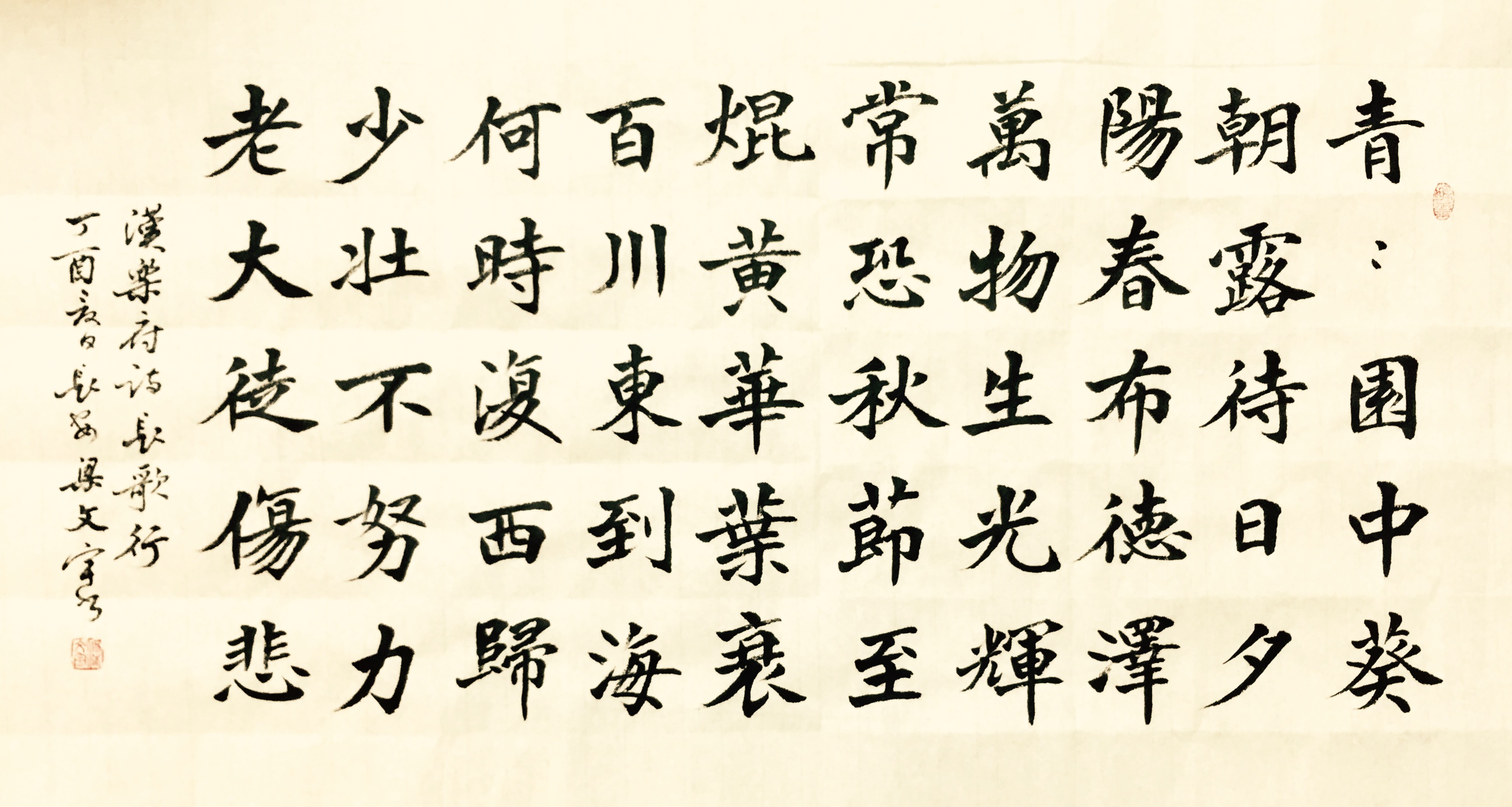 文宇兄自幼酷爱书法,少年聪慧,六岁临池,遍临诸贴,楷入钟王、气融魏碑,承欧柳神形、取三颂金石气韵、融先贤之章法结体、注时人之笔意,在自悟自省中书艺大进,令人侧目。其书既雄强劲健、又遒丽妍美、温润爽利、八面生姿,飘逸潇洒,深沉灵动,沉着痛快,神定气足,一如他那洒脱爽朗的气质。