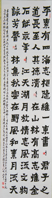 谢西宁那厚重而不失灵动的“二爨体”楷篆作品,收放自如、行云流水一般的行草书作品,是一大特色,显示出很高的书法功力。他的老友胡红拴先生曾赠诗一首,较好地概括了谢西宁的人品和书法。诗曰: