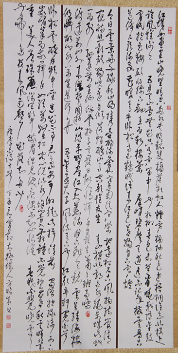 方昭成,男,1954年11生,陕西地矿集团有限公司机关退休干部。1987年在陕西省地矿局第二届职工书画展获得书法一等奖、绘画一等奖。此后,搁笔27年。2014退休后重拾旧笔,日日临池,废寝忘食。作品获首届中韩议员公务员提名奖,2015年《书法中国全民书法大赛》有6幅作品入选《精品作品》,2016年获“羲之杯”鼓励奖、第三届中国国际书法大赛优秀奖、全国企事业职工书画大赛优秀奖、首届敦煌写经邀请展优秀奖。
