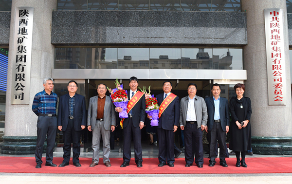 4月27日上午,地矿集团公司总部办公楼前锣鼓喧天,掌声不断。集团公司举行欢送仪式,欢送陕西省劳动模范、集团公司党委书记、董事长赵廷周,陕西省先进集体代表陕西工程勘察研究院院长刘咸斌,出席28日在陕西宾馆召开的“2017年陕西省庆祝‘五一’国际劳动节暨表彰省劳动模范大会”。