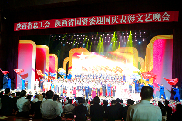9月28日晚,省总工会、省国资委在陕西大会堂举办迎国庆表彰文艺晚会。省委组织部副部长张闻华,省委宣传部副部长李彬,省总工会常务副主席张仲茜、副主席赵霞,省扶贫办副主任彭安季,省国资委领导班子成员出席。省国资委党委书记邹展业讲话,党委副书记郁伟主持表彰会,副主任骆东山宣读表彰决定。集团公司领导赵廷周、刘建勤、白林科、张军、马贵锁、安增会、万兆发、王根宝应邀出席。