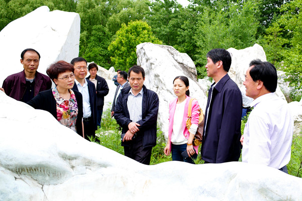 在鼎湖延寿宫石艺园,西安市国土资源局矿管处处长郑世骅主持。赵廷周一行与蓝田县委常委、常务副县长朱彤,蓝田县有关部门、乡镇、行业协会及玉石企业负责人进行了亲切座谈。