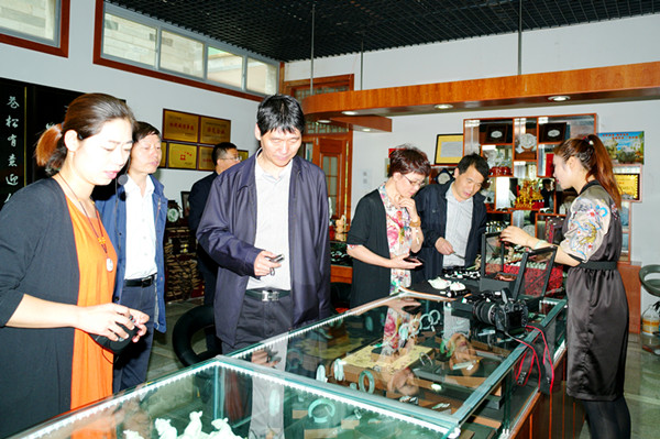 赵廷周一行深入焦岱镇西安蓝田焦岱石材开发公司,现场观摩了蓝田玉的生产加工过程。赴鼎湖延寿宫石艺园,参观了西安市蓝田玉文化博物馆,了解了蓝田玉的历史文化和沧桑变迁。随后,深入辋川镇八亩地、核桃沟玉矿点,现场考察了蓝田玉玉石资源的露头情况。