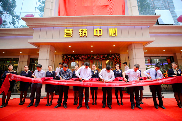 10时35分,出席仪式的各位领导为营销中心开放剪彩。