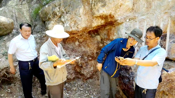 齐文一行冒着酷暑到达项目工作区,首先听取了该队总工程师和项目组的工作汇报,检查了项目工作记录、工作图件等资料,详细询问了项目的工作进展情况,并现场察看了矿脉的产状、露头和走向。齐文说,在宝鸡地区发现的玉石矿,与我省商洛地区发现的玉石矿类型基本接近,双方应该有着一定的关联,这需要技术人员在工作中不断地进行验证。齐文对项目实现找矿突破寄予厚望,并勉励地质技术人员开拓思路,扎实工作,善于研究和总结,努力出大成果。
