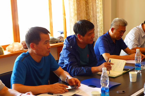 赵廷周一行不顾路途劳累,抵达吉尔吉斯坦首都比什凯克后,立即赶往中亚西勘公司驻地看望集团公司驻吉工作人员,了解员工办公条件、生活状况、工资薪酬等,与外籍员工进行亲切交谈。中亚西勘公司向考察团汇报了中亚公司成立一年七个月以来的工作情况以及未来发展规划。赵廷周对中亚公司一年来的工作给与了充分肯定,认为中亚公司能够克服国家、地域、民族、政治、法律等差异,走出国门,利用自身技术优势、人才优势,在比什凯克扎下了根基,与地方政府、办事机构、中资企业建立了友好关系,为下一步集团公司在吉发展创造了良好环境。他要求中亚公司关注并充分考虑当地的法律政策,一定要做好风险防控管理工作。