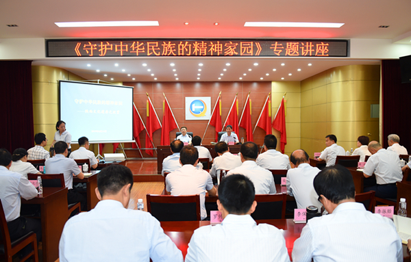 5月24日上午,陕西省咨询委员会副主任白阿莹,应邀前来地矿集团公司作《守护中华民族的精神家园——陕西文化遗存之欣赏》专题文化讲座。集团公司党委书记、董事长赵廷周主持讲座。集团公司领导,总经理助理、副总师,所属各单位主要负责人,总部各部门主办科员以上干部共70余人聆听了讲座。
