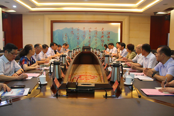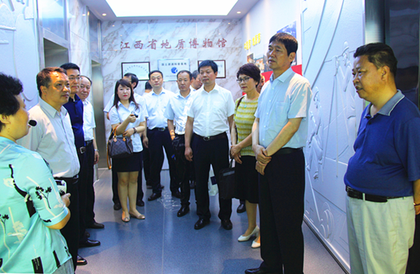 赵廷周向江西省地矿局介绍了陕西地勘单位改革的相关政策、集团公司基本情况以及改革发展历程,对地矿经济转型升级“三大发展战略”、“三个地矿”发展目标,以及汉中玉文化产业进行了重点介绍。他说,江西省地矿局经营管理的理念、转型升级的思路、地质找矿的成果,及江西省地质博物馆建设,这些都值得陕西地矿集团借鉴学习。当前,全党正在开展“不忘初心、牢记使命”主题教育,我们本次到江西来,既是调研交流工作,也是传承红色文化,感悟使命担当,收到了很好的效果。