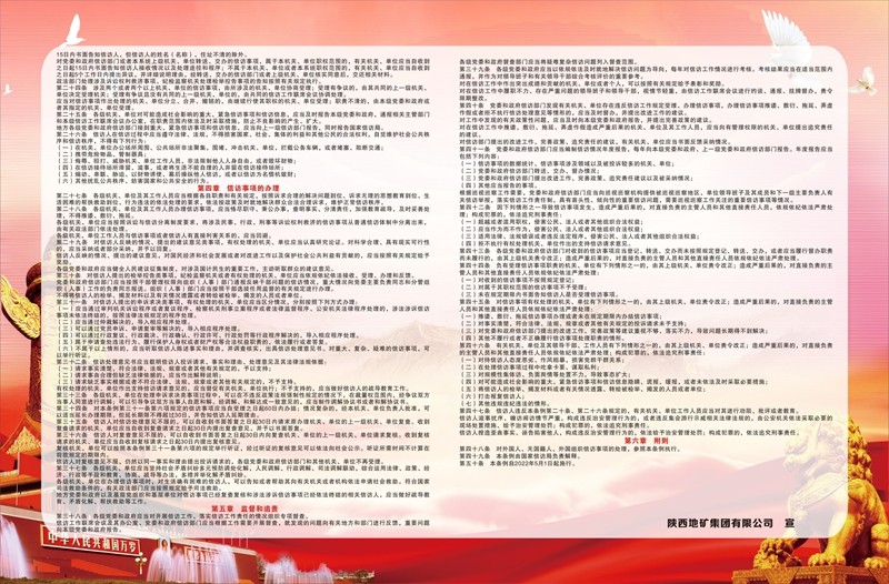 刘建勤就学习宣传贯彻《信访工作条例》、做好集团公司信访工作强调,一是要提高政治站位,深化思想认识,全面增强学习宣传贯彻《条例》的政治自觉;二是要强化责任担当,认真履职尽责,切实增强学习宣传贯彻《条例》的工作自觉;三是要坚持依法化解,突出源头治理,增强学习宣传贯彻《条例》的行动自觉。刘建勤同时要求,要结合“宣传月”活动,利用网站、公众号、展板、答题等形式,组织好《条例》的学习宣传,结合治理重复信访和化解积案,熟悉信访办理流程,抓好《条例》的贯彻落实。