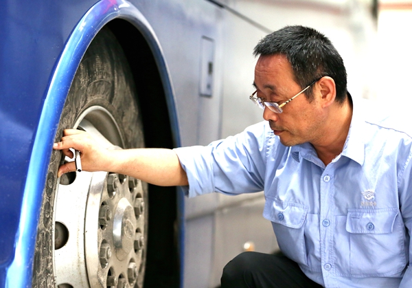 工作中有许多事情必须做,但你不一定喜欢做,这就是责任的含义。责任心就是关心别人,关心公司。有了责任心,工作就有了含义和灵魂。张佺就是用自己朴实的行动诠释着责任,体现着自己对公司那份真挚的责任心。他是西探装备阎良新厂的守护人。图为张佺在检查车辆轮胎安全。