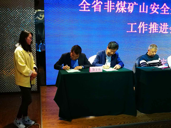 4月12日至13日,全省非煤矿山安全生产专项整治工作推进会在旬阳县召开。省安全监管局副局长李进出席会议并讲话。集团公司副总经理马贵锁参加会议并代表集团公司与省安全监管局签订2018年非煤矿山安全生产目标责任书。