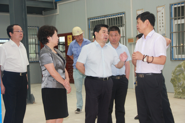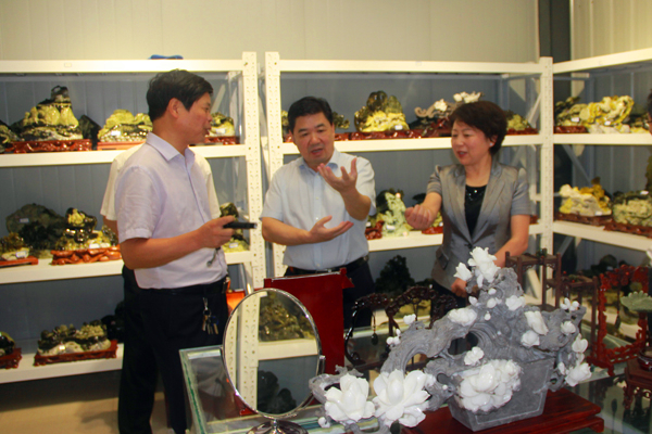 王吉德一行深入玉雕厂和工艺厂仔细查看了原石切割、设计、雕刻、打磨、抛光玉石产品生产加工流水线,详细了解汉中玉的形成过程、矿区位置、属性特征、玉石种类和市场销售等情况,对汉中玉产品表示赞赏。