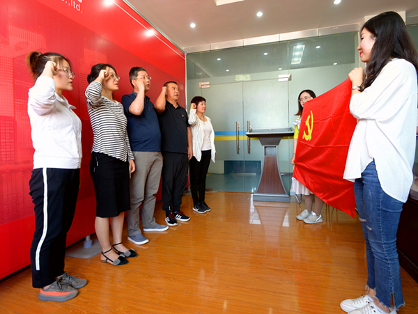 集中学习内容结束后,大家重温入党誓词,并为历年来于五月入党的新老党员逐一赠送生日贺卡与党徽。党员们逐一发表感言,大家一致认为,此次庆生活动“温誓词、赠贺卡、忆初心、送良言、谈感悟”,让大家在切实感受到了党的温暖与关怀,时刻警醒自己终生不忘本源、不忘本性、不忘本真、不忘初心。