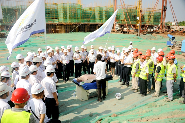 为了贯彻落实“安全第一、预防为主、综合治理”的安全生产方针,检验和评价生产安全事故应急救援预案的有效性,提高生产安全事故应急能力,8月8日上午,陕西工勘院在恒大养生谷基坑支护项目施工现场举行了坍塌事故应急救援演练活动。该院领导班子成员、相关科室人员、实体负责人、实体技术负责人及安全员等50余人参加了演练。