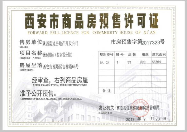 7月28日,拉克雷公馆获《商品房预售许可证》。拉克雷公馆现已五证齐全,营销中心正常开放。