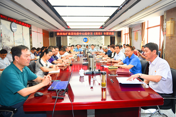 8月28日上午,地矿集团公司党委书记、董事长赵廷周主持召开党委中心组学习(扩大)会议,邀请有关教授、讲师作《宪法》和保密专题讲座。集团公司领导潘发明、马贵锁、何淑萍、万兆发、王根宝出席。
