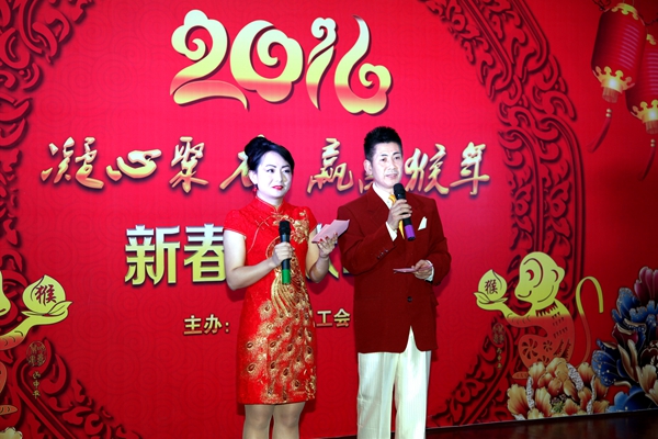 2月1日晚,物化探队举办了以“凝心聚力、攻坚克难、 赢战2016”为主题的“迎新春”职工联欢晚会。地矿总公司副总经理、工会主席白林科出席晚会并讲话。队长王新坪、党委书记贺志银及班子其他成员、晚会演出人员、在队职工及部分家属共计100余人欢聚一堂,共迎新春佳节。
